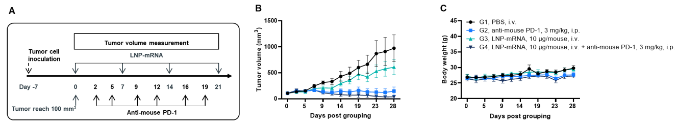 Combination Therapy of LNP-mRNA and Anti-mouse PD-1