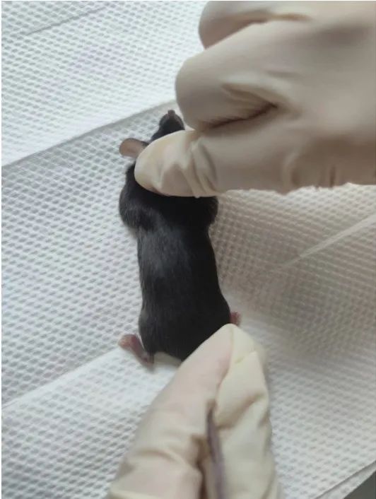 颈椎脱臼是一种快速而无痛苦的小鼠安乐死方法。一般用手或工具将小鼠的颈椎迅速扭曲,导致脊髓损伤,从而使小鼠立即失去意识并停止呼吸,此方法只适用于体重<200g的啮齿类动物。
